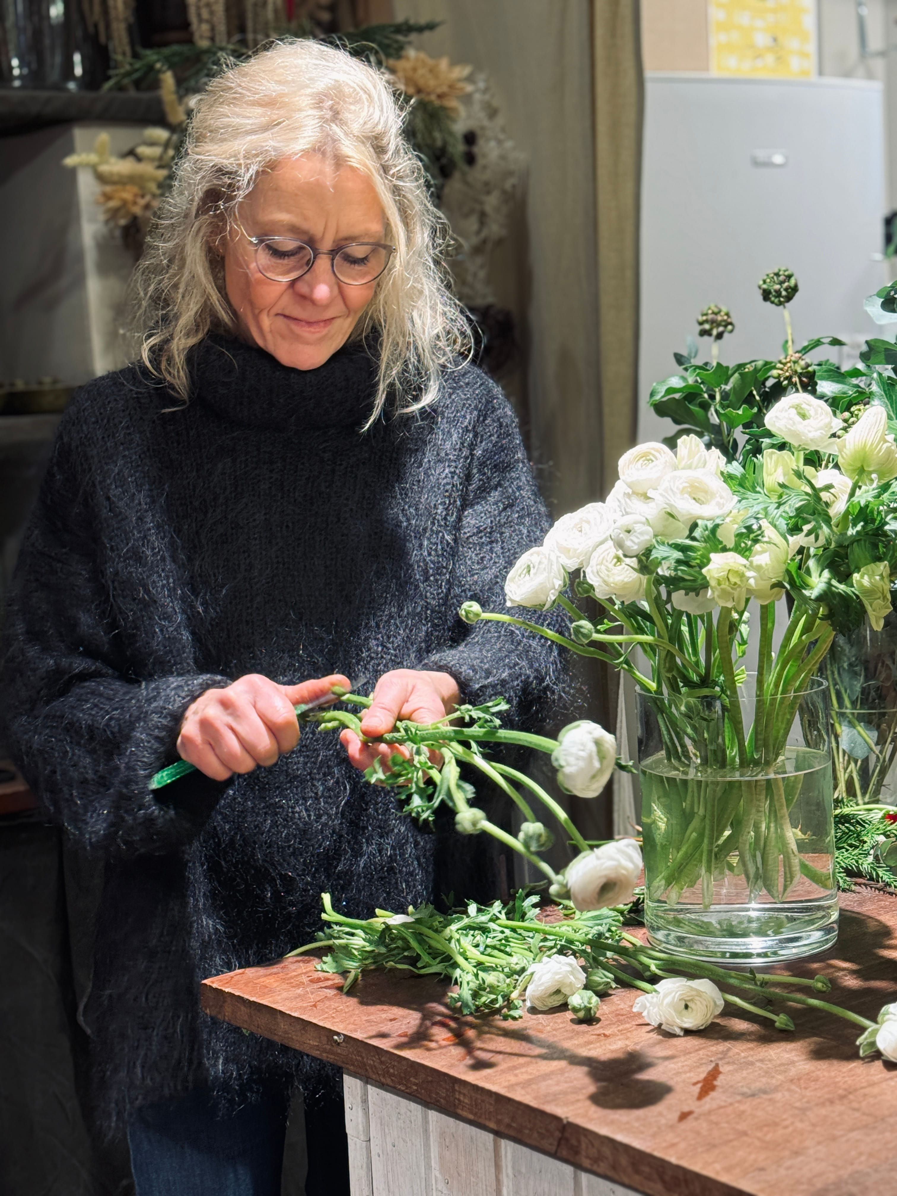 Sedan vandrar vi vidare in i blommornas värld för att binda buketter eller arrangera bordsdekorationer eller kanske jul- dörrkransar om det är senare på året.
